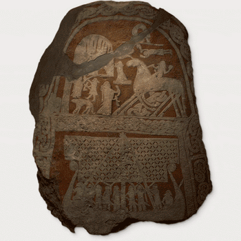 There has been finds of small pendants in silver from the Scandinavian Iron Age that seems to represent the Valkyrias carrying their meadhorns in Valhalla. These pendants could have been a way of representing the person wearing them wanting to get to Valhalla after their passing. Since it was the task of the valkyrias to bring themt here. Why these amulets are also believe to represent valkyrias is because of their likeness to similar imagery in stone carvings. On one picture stone from Gotland the same outline as the pendants can be seen, the valkyria can be seen just besides a rider of an eight-legged horse (presumably Odin). This stone was found on Gotland, Sweden, and is theorised to depict the welcoming of a hero into Valhalla.
